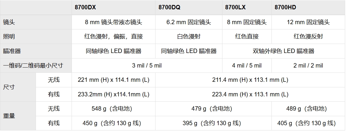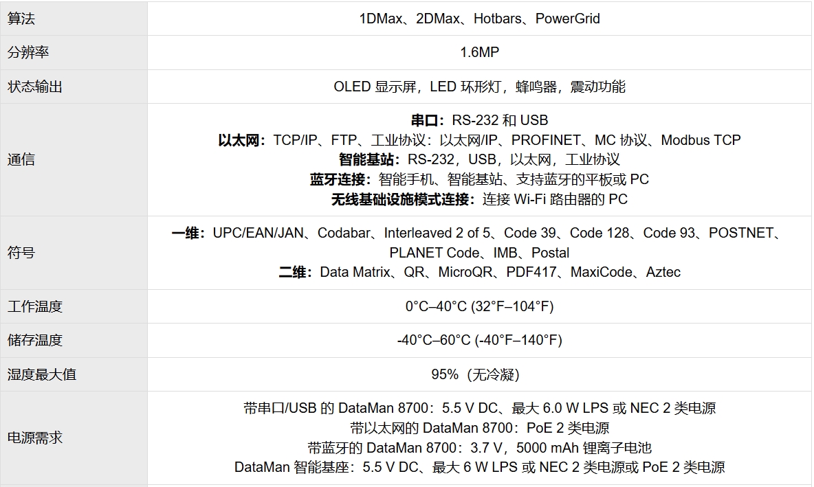 DataMan 8700DX 型号配置最新的专利解码算法、HDR 技术、高速液态镜头、以及多核处理器,可在 150 毫秒内完成读码。集成漫射、偏振和直接照明,可以形成优质的图像,因此能够轻松读取有挑战(反光、圆柱、黑暗)表面上的点刻、激光蚀刻和标签码且不会产生热点。