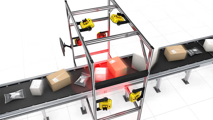 扫描机器人传输的产品和包裹,减少人工干预并提高效率。