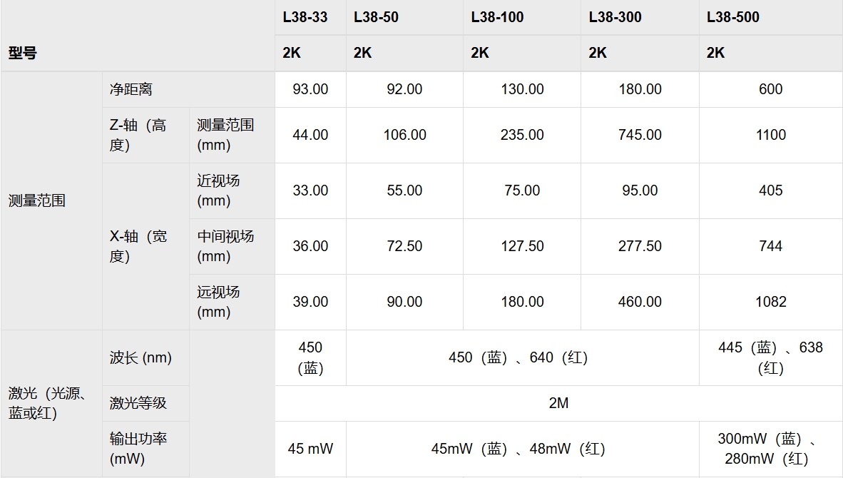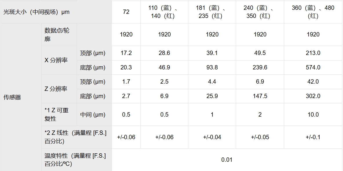 *1 在测量范围中间,使用 4x4 mm 区域在点云上平均测量 100 次 Z 重复性。